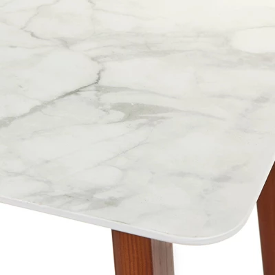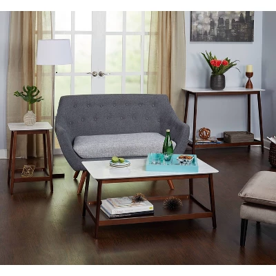 This Jhovies Console Table from Buylateral is a perfect fit in anyone’s living room. This console table features a unique faux marble top with a solid wood frame and legs in a warm walnut finish. The lower shelf provides a perfect showcase for decorative items, books and more. With this minimalist style, the Jhovies console table is sure to enhance your living area or entryway.